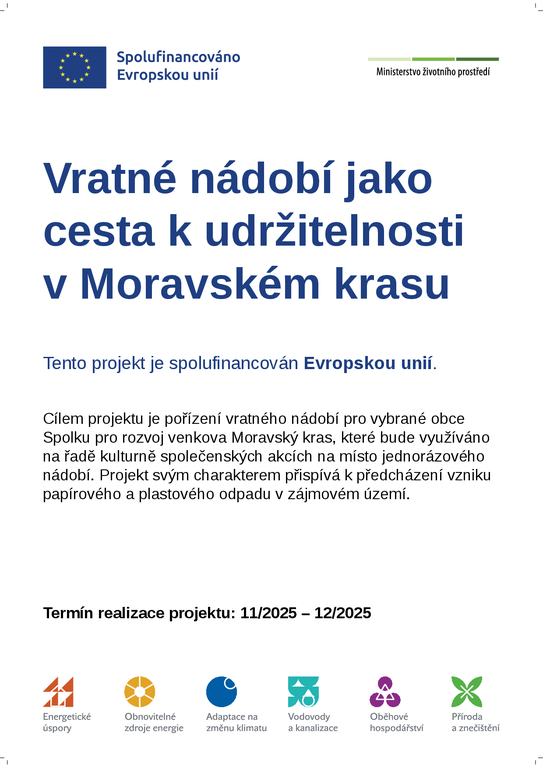 Projekt Spolku pro rozvoj venkova Moravský kras - Vratné nádobí jako cesta udržitelnosti v Moravském krasu