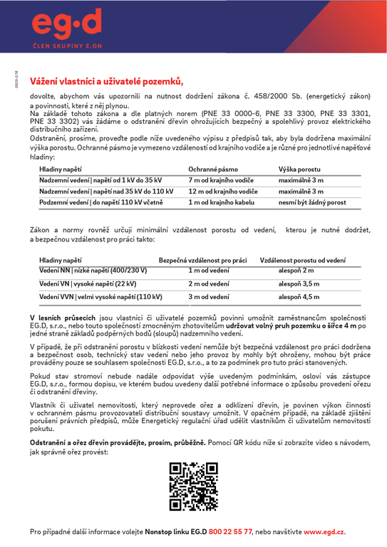 Výzva k odstranění dřevin v blízkosti el. vedení
