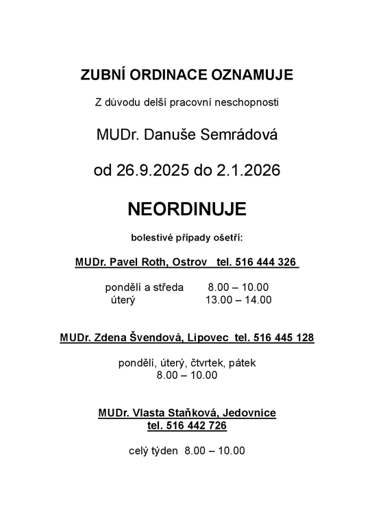 Zubní ordinace MUDr. Semrádová - informace